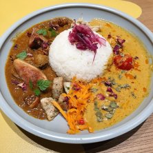 プレオープンの時混んでて入れなかったので行って来ました! 初めてのお店シリーズ!&古町ランチ213軒目。 3種あいがけで、三種の山椒キーマ、エビのココナツグリーンカレー、チキンカレー。 しっかりスパイス効いていながら、割とマイルドなバランスで美味しかった! 辛さもほどほどで、私にはちょうど良かった☺️ ホットチャイも美味しかった!