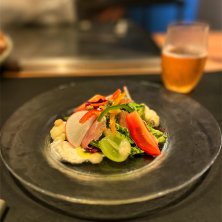 お誕生日祝い🎉でご馳走になりました フルーツと生ハムのサラダ、とてもいいバランスの盛り付けです