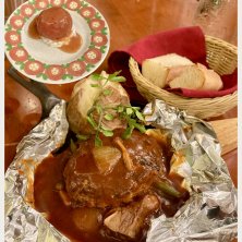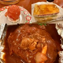 【百年洋食ハンバーグステーキ】 妻の実家で行われた法事が無事に終わり 東京に戻る途中の遅いランチで 妻の一推しの京都の老舗洋食店の東洋亭へ オーダーしたのは一番人気の百年洋食ハンバーグ アルミホイル包みハンバーグステーキとバターを添えたホクホクのベイクドポテトが熱々の鉄板にのせて提供される🍳 それに最初に出てくる丸ごとトマトサラダ🍅も 温めて提供されるお代わり自由のパン🥖も 全てが逸品でとても美味しゅうございました😋