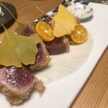 忘年会で初。 魚と鶏中心のコース。美味しかった。