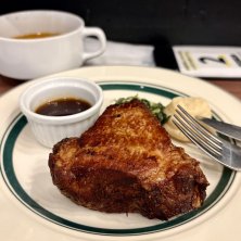 女性・少食の方向けの潮海山200g 出てきた時に、もうひとつ上のランク(猿投山270g)でも食べられるのでは…と思うんだけど、やっぱりこれで充分満足 ごはんの盛り付けが丸くて可愛いのも👍 ちなみに付け合わせをフライドポテトにすると-100円