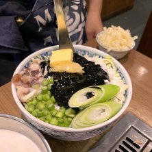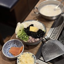 そして今日はママ友ともんじゃランチ〜🩷❤️🧡💛 園内部のパトロールをして回り事務作業もしてたっぷり2時間働いてからの乾杯🍻‼️ ✨イカ墨クリームもんじゃ✨ コレがこのお店の看板メニューかな!?美味しいんだよねぇ🤤❤️米が入ってリゾット風! 生クリームとイカ墨が🦑濃厚でお酒が進む!
