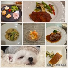 今日はドッグコテージ ハードヒルズさんにお泊まり🏠 どのお料理もとても美味しかったです 左上は🐶メニュー