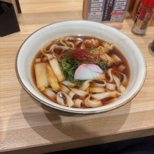 JR名古屋駅と東京都の日本橋に有るきしめんの店、驛釜きしめんのきしめん。 鰹節、鯖節などの出汁にたまり醤油を合わせた濃い口のつゆに、国産の小麦粉と塩、水のみで作り上げた平たい麺、油揚げ、ナルト、鰹節、ほうれん草を入れたこの店のノーマルなきしめん。 麺は、明治23年創業のよしだ麺が使用されているそう。 至って普通のきしめんではあったが、軽く食べる分には丁度良い。11月に日帰りで名古屋に行った際に、夜行バスで名古屋駅に朝到着して寒かったので1杯食べたくなってしまった。10月に東京にも店が出来たそう。