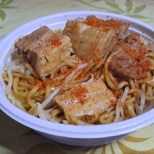 一昨日(2月23日(日))の晩御飯 【UberEats/俺の生きる道 東白楽店】 ●まぜそば 1,550円 ブタまし 200円 野菜まし 50円 こんな感じで届きました♪