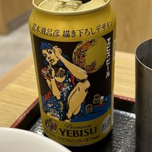 そば、もつ煮と一緒に缶ビール頼んだんだけど、 それがこちらの荒木飛呂彦 描き下ろしデザイン