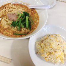 坦々麺 半炒飯 セット 地味な店構えだが味は良い 昼だけの営業との事