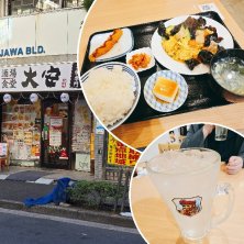 【今日のランチは…】 ・レモンサワー・極厚元祖目玉叉焼定食 昨日行ったのに、また嫁さんと行ってしまった! そ、最近お気に入りの『大安酒場』にヽ(´▽`)/ その名の通り、こんなにも極厚の叉焼が3つも ある定食😋目玉焼きの黄身と叉焼を絡めて、 めちゃめちゃ美味しい😆嫁さんは酢豚定食☝️ 大満足なランチでした(ノ≧ڡ≦)☆