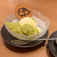 なみすけの焼き印入りビスケット付き バニラアイスずんだ餅添え