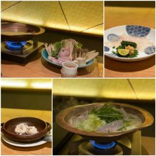 週末、ずっと行きたかった「心・技・体 うるふ」に、家族と長男の彼女ちゃんと5人で行ってきました! 亡くなられた九重親方の監修のお店です。 ・季節の先付・ふぐ皮ポン酢・ふぐの刺身・ふぐの唐揚げ・焼きふぐ5種盛り・特製ふぐの土鍋炊き込み御飯・デザート 焼きふぐをこんな風に食べたのは初めて! ネギ塩、にんにく、梅、醤油麹、辛味噌の5種でお店の方が焼いてくれます! お鍋→お雑炊も捨てがたいけど、焼きふぐ美味しかったです!