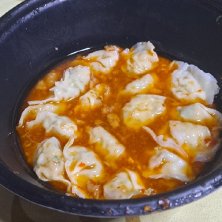 一昨日(10月25日(土))の晩御飯 【UberEats/俺の生きる道 鳥山町店】 まぜそばのタレに水餃子を投入♪ 水餃子、全部で16個有りました♪