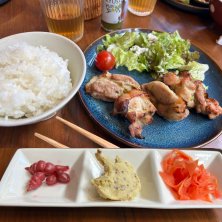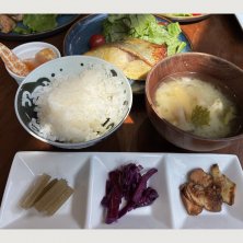 事務のみんなとランチ 初めて行くお店 優しい味付けのお店で店主の女性がひとりでやってるのかな? ランチは豚、鶏、魚から選べて写真の料理プラス味噌汁とデザート(オレンジピールと黒糖だった)ついて1300円でした
