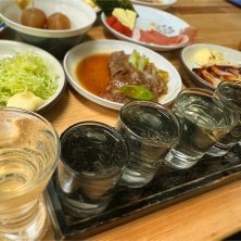 幕張なう。おつまみセットと利き酒セットを頼んだら次から次へと絶品の小料理が出てきて利き酒レベルを超える量が出てきた🍶このお宿の食堂は隠れた名物で毎年楽しみにしてたんです😋 #仕事です仕事