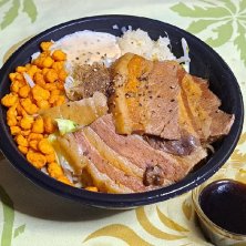 昨日(1月26日(日))の昼御飯1/3 【UberEats/用心棒 東白楽店】 ●特製まぜそば 2,050円 トッピング・チャーシュー 200円 中華麺、チャーシュー、キャベツ、もやし、唐辛子まぶし揚げ玉、おろしニンニク、ガーリックマヨネーズ、魚粉
