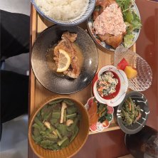 しば漬けタルタルチキンと銀ダラのバター醤油ソテー とにかくどの皿も丁寧で味付けもセンス良い! ☆*:.。. o(≧▽≦)o .。.:*☆