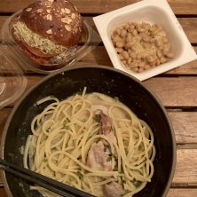 ごま豆乳スープにぶっこみスパとダコーバーガー 昼間散歩してダコーってみて 前に仲間が横で食べてて「パテみたいな」って言ってたこちら 惣菜系とドーナツを同じくして掴むとアレコレトングについてそれでまた掴むから気持ち悪いけど レジで袋に入れる時は拭き拭きしながらやってくれてるように モノが独創的で美味しくて スタッフさんがキビキビ丁寧にしてても 全体の印象で損するブランドだなー ペタッとついて悩ましいトマトソースは美味しいし スプラウトももっさりで美味しいんだけどかわいいものはたべづれぇー