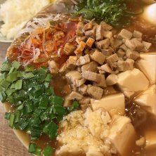 ラストスパート💦 クリスマスから始まった限定✨ スタミナ麺と悟飯ちゃん もはや原型のない無頼な逸品! ナミナミ系らーめんと… あんかけではなく、あんの中に麺ですねー✋🏼 にんにくがハンパないので調整が必要です。 くやしいですが好み❤️