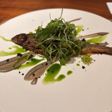 鮎のコンフィ ハーブのサラダ 蓼酢