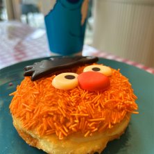 キッザニア遊んで疲れたのでちょっとお茶。 子供達クッキモンスター推しでそれしかないけど、 めっちゃかわいいー😍