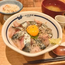予習なしで飛び込みランチ 大トロ炙りさば定食 ライス:中 味噌汁:あおさ 次回は ごまざば丼食べたい 旨し!