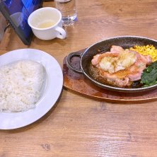 晩飯「チーズトマトハンバーグ、ドリアカルボナーラ」