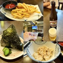 2軒目…わっしょい😃 🇯🇵vs🇧🇷 蓮根ツナマヨ…すじこおにぎり🍙😋 〆は門前の湯♨️