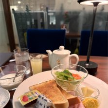 当初大阪でのミーティングからのディナーの予定だったので大阪に宿泊する気満々でホテル予約してしまったので朝食は大阪でした。 蜂蜜入りヨーグルトが美味しい。あとブレンドコーヒーも好みの酸味控えめ焙煎ちょい強めで良かったです。