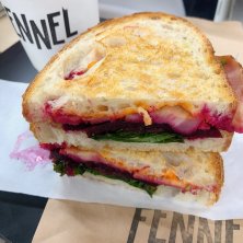 テイクアウトでベーコン&野菜サンド。 トーストしてくれるのが嬉しい☺️ 赤いのはビーツ。