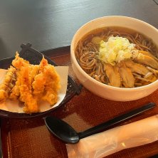お昼ごはんに天ざるそば🦐 山形風の、歯応えあるお蕎麦で 美味でした😋