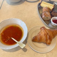 パスタセット メインセット スープ 野菜と豆のトマトスープ ピストゥー風味 ブレッドプレート 自家製焼きたてパン4種 クリームチーズ/コンフィチュール