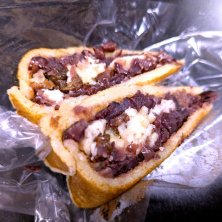 ラムレーズンどら焼き もちもちの薄い焼き皮の中にはたっぷりの粒餡、そしてその真ん中にラムレーズンペーストがあります。レーズンの存在感は全く感じなかったけど、ラムの香りが素敵で美味しいです。こちらのお店は香りの使い方が上手だと思います。