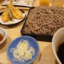 夢庵 コースカベイサイドストアーズ店(@^^)/~~~さんですねぇ(笑)☀️😵💦(`Д´≡`Д´)?? 富士盛りそば、通常の3倍になります(爆)(@^^)/~~~😋🍴💕 天ぷらも付けて❗天ざるそばです。