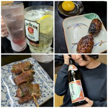 11月13日の2軒目 仕事終わりの娘の旦那さんも合流して焼き鳥屋さんへ 私はお腹いっぱいなので軟骨入り肉団子とみょうが肉巻き あとついにこちらのお店にボトルをキープしちゃいました はしゃぐ娘笑 そして3軒目はまさかの…