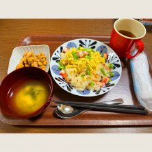昨日のお昼ご飯 ☆ちらし寿司 ☆お吸いもの ☆お漬物