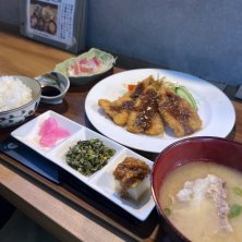 今日は、変な天気ですねー!午前中には25℃まで気温が上がったのに、今は17.5℃。身体が追いつかない。 お昼は海鮮食べたくて、海彦へ。 海彦定食を。のどぐろの刺身、キスのフライ、アラ汁等。これで、千円ちょっと。 店主が朝から釣ってきたものが出されてます。 ^ ^
