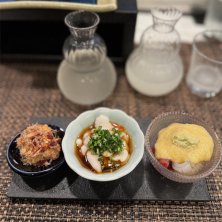 あん肝 カリカリ梅 白子ぽん酢ラー油 イカとマグロのやまかけ 🍶而今 おりがらみ生 🍶而今 にごりざけ生 🍶飛露喜 初しぼり