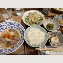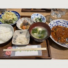 今日のご飯🍚 新規開拓したくて、気になってたお店に。 初めて行ってみたよ😁 夜定食。日替わりのメインのおかずを選ぶ形式。 小鉢もお味噌汁も全部、美味しかった〜😊 リピート決定のお店に👏👏👏