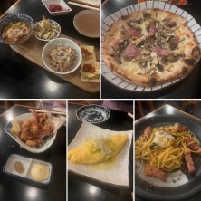 久しぶりにこちらのお店。テーブル席に座る。 ・イタリアンおばんざい。どれも美味しい ・フンギのピザ。キノコたっぷり ・唐揚げ。マヨと山椒付きなのがいい。 ・穴子のニラ玉オムレツ ・ニンニクマシマシペペロンチーノ 調子に乗ってシャンパンや日本酒飲んじゃいました。