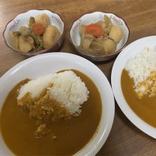 カレー🍛 素材の旨みがとけこんだ (↑ココでオットが具が無い言い訳?)と😆 海老のクリームカレー