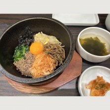 今日のランチ〜♪ 石焼きビビンバ🇰🇷 今日は、寒かったから温まった〜😊 デパ地下のお店だから、お一人様が多いよ😁