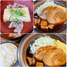 ランチ 煮豚と豚吸い定食 陶芸教室に行く途中、陶芸仲間と今年オープンして気になってたお店へ トロトロの煮豚と肉吸いの豚バージョンの豚吸いに豚出汁で作ったふわふわ出汁巻がどーん! ご飯は大中小選べて小にしたのにかなり大盛りでした😅 晩ごはんはあまりお腹が空かないので残りもので軽く済ませました。