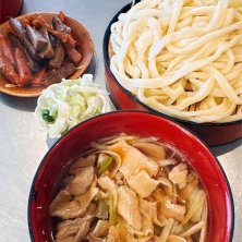 お昼ご飯 塩肉ネギ きんぴら じゃこキャベツトッピング 久しぶりに田舎っぺで肉汁うどん やはりここが一番美味しい😋