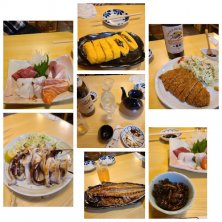 11/26夜 刺身盛り、黒豚とんかつ、鰻肝、アジ干物、う巻き、ゲソ塩焼き 生ビール2、瓶ビール6、地酒5合 平日なのではしごなし
