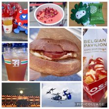 万博 in Before Yesterday. 🇹🇼テックワールド ✨四季春フルーツティー 🇴🇲オマーン・ワゴン ✨ローズアイス 🇯🇵日本館 ✨フリーズドライ味噌汁(お土産) ✨藻キティちゃん 🏪セブンイレブン ✨アールグレイアイスティー 🇲🇹マルタ・ワゴン ✨フティーラ(ベーコンと卵) 🇧🇪ベルギー・キッチンカー ✨ポテト オマケ ✨アメリカ館待ち中の大屋根リングと満月 ✨離陸直後の空飛ぶクルマ