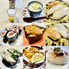 部下さんと佐渡回転寿司 弁慶😃 皮剥肝…生雲丹…生牡蠣😋 あさりの唐揚げ😋
