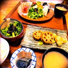 蓮根挟み揚げと貝柱包み揚げ定食 920円也