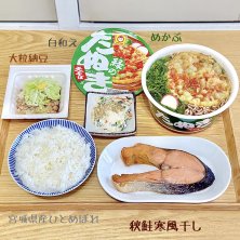 休日の朝ごはん🍚 秋鮭寒風干し&緑のたぬき😋