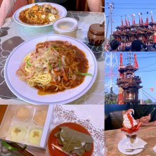 こんばんは😊 今日は実家のお墓参りをして来ました🙏🏻 お天気に恵まれてドライブ日和🚗〜33 丁度お祭りでもあったので見物して来ました 数年前にユネスコの無形文化遺産に 登録された亀崎潮干祭りです 毎年5月3日と4日に行われる祭事 写真に写ってる山車を 神社の前の潮干の浜まで、男衆が曳き回す 勇壮な神事です⛩️ 今年も大勢の観光客で賑わっていました😊 このあと久しぶりに 昔、地元でよく通っていた あんかけパスタを食べて 松華堂のお菓子を買って帰りました♪ どちらも懐かしいお味でしたよ