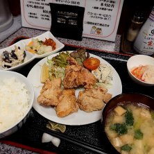 鳥の唐揚げ 家庭の唐揚げという感じ👍 小鉢もめちゃくちゃ美味しい😘