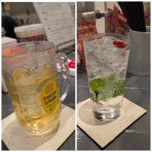 9月5日 お昼のラーメンのスープを豪快にTシャツに散らしたので着替えを探して古着屋さんへ https://www.instagram.com/furugiya_tastemaker? 店主さんの接客も楽しくて娘も私もシャツ購入 夜のお店まで時間あったので0次会 ハイボール頼んだら濃い! 娘は小ビールのあときんぎょ 広島ではあんまり見かけないのですが、焼酎ソーダ割りに紫蘇と唐辛子を入れた見た目も味も爽やかなドリンクです 関西出身の気さくな店主さんにも1杯ご馳走して小1時間過ごしてから夜の部へ!